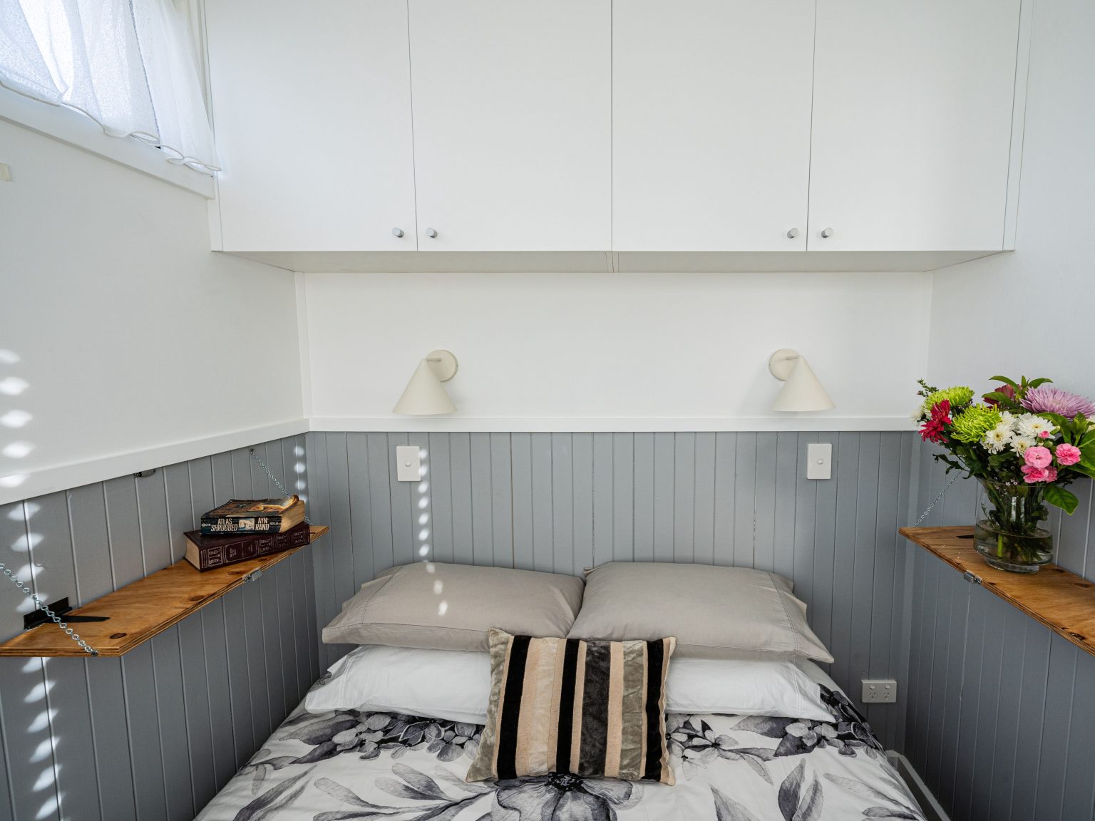 One bedroom tri axle tiny house on wheels for sale. Tiny Home built by reputable building firm in Vic – Apex Roof and Wall Includes: 5m x 2.5m hardwood deck and covered pergola; 2.7kw solar system new condition.